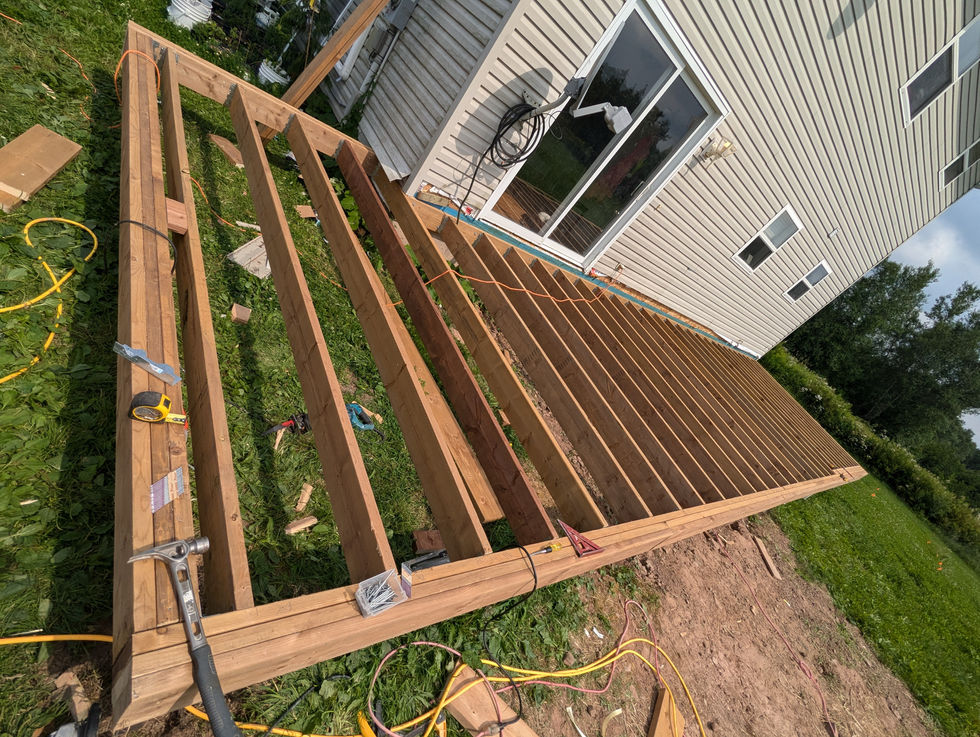 This very nice and hardworking client had always wanted a wrap around covered deck at her homestead. I also added a new door to her bathroom onto the deck for easy access to her future small hot tub.